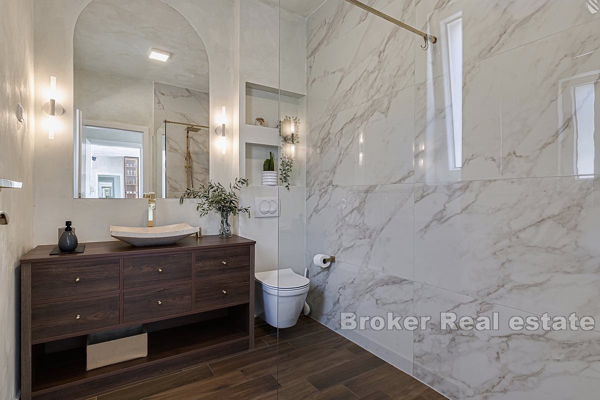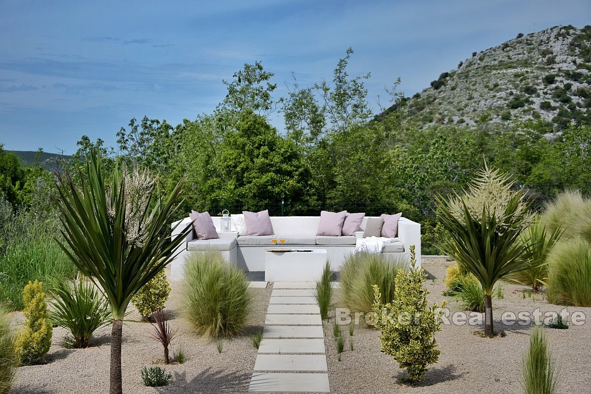 Tento dům hladce splývá s autentickou krajinou dalmatského vnitrozemí a nabízí pocit naprostého soukromí a klidu. Současný interiér ladí s přírodou a vytváří dokonalou synergii designu a přírodní krásy.