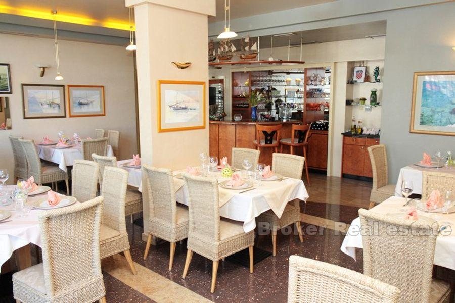 For sale a well-established restaurant and cafe, located in an attractive location in the center of Makarska, by the sea, total area of approximately 135 m2. The restaurant is spread over 97 m2, while the coffee bar is 39 m2 in size. Both business areas are fully furnished and equipped by high business standards. In front of the subject area is a large open terrace that can accommodate up to approximately 100 persons, but the concession is payed to city authorities.