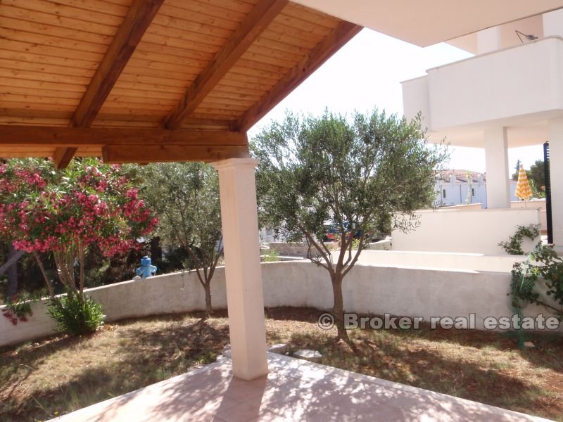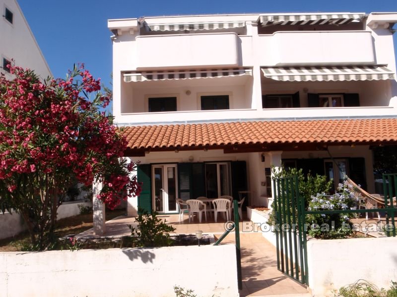 Lägenheten är en del av ett sommarhus, i denna byggnad finns 6 lägenheter. Denna lägenhet ligger på bottenvåningen. Den fritidshus ligger i en populär semesterort. Det är bara 40 meter långt ifrån stranden, kan du gå i trappor upp till lägenheten. Lägenheten ligger på en liten kulle. Det byggdes på 2001-2002, finns två rum (köket och vardagsrummet är inte åtskilda) och ett badrum (med toalett). Det finns en täckt terrass. Utrustningen är på god status, sälja diskmaskin, TV och luftkonditionering etc. Det finns en liten pool, en barnpool och en jacuzzi.